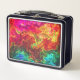 Cette boîte à lunch a un design coloré et artistique.