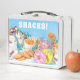 Voici une boîte à lunch amusante avec une variété de délicieuses friandises, dont des beignes, des biscuits, des bonbons et des glaces avec le mot "SNACKS!" en police rétro ci-dessus. La boîte à lunch a un aspect un peu vintage et est parfaite pour le travail ou l'école. Offrez-en un cadeau à un élève pour son retour à l'école ou à un amateur de desserts pour son travail ou comme accessoire fantaisiste.