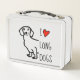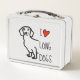 Dessin simple de teckel mignon combiné avec un mème drôle : J'adore les chiens longs ! Boîte à lunch unique, humoristique et adorable pour tous les amoureux de chiens saucisses.