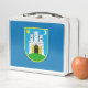 Lunchbox métallique avec design avec drapeau de Zagreb, capitale de la Croatie, drapeau bleu avec emblème