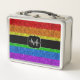 Personnalisez la boîte à lunch en métal brillant unique avec votre nom et votre initiale. Un drapeau LGBT scintillant dans une parties scintillant vibrante rouge, orange, jaune, vert, bleu et violet brille. *photo de scintilles pas de parties scintillant réelle!