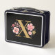 Retournez à l'école dans le style avec cette jolie boîte à lunch monogramme rose à fleurs. Il est décoré d'une lettre d'or "X" entourée de fleurs. Conçu pour vous par Blackberry Boulevard.