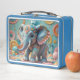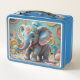 Un joli éléphant bleu décoré de tourbillons et de points roses fait une adorable boîte à lunch pour une petite fille.