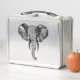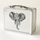un design décoratif d'un grand éléphant africain gris avec de grandes oreilles sur une boîte à lunch métallique