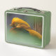 Ajoutez une touche de nature à l'heure du déjeuner grâce à cette boîte à lunch colorée et au thème de la faune ! Des feuilles de palmiers verts vignette involontairement un mâle adulte de faisan d'or, prêtant simultanément un subtil art à ma capture, tout en ne faisant pas grand-chose pour dissimuler son étonnant or et son plumage rouge. Si le phénix avait une incarnation mortelle, cela doit sûrement être le cas. Basé sur la photographie originale de W.H. Sim. Tous droits réservés. Voir plus sur zazzle.com/walkswithnature