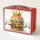 Cette boîte à lunch présente une illustration vibrante et délicieusement détaillée d'un cheeseburger classique. Des couches de fromage cheddar fondu, une pâte de boeuf juteuse, de la laitue fraîche, des tomates mûres et des cornichons croustillants sont empilés entre un pain de sésame doré. Le design éclate de couleur et de saveur, donnant à chaque repas l'impression d'un voyage à votre joint de burger préféré.