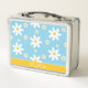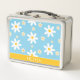 Faites un déjeuner spécial avec cette adorable boîte à déjeuner personnalisée avec un joyeux design floral bleu et jaune marguerite, parfait pour les filles de retour à l'école! Avec un motif floral doux et ludique, cette boîte à lunch métallique personnalisée est à la fois mignonne et fonctionnelle — un accessoire scolaire obligatoire qui se démarque dans la salle à manger. Le design comprend des fleurs marguerites à l’aquarelle brillante en bleu pastel et jaune soleil sur un arrière - plan blush ou blanc (personnalisable), et le nom de votre enfant clairement affiché pour une touche personnelle. Construite en métal durable et équipée d'une poignée en plastique, cette boîte à lunch est idéale pour une utilisation quotidienne, facile à nettoyer et légère pour les petites mains à transporter. Parfait pour les enfants d'âge préscolaire, la maternelle, l'école primaire ou même la garderie, cette boîte à lunch peut contenir des collations, des sandwichs, des fruits, des ustensiles et même de petites notes de la maison. Les parents adorent la personnalisation, et les enfants adorent le look amusant et élégant! Cette boîte à lunch fleurie personnalisée est parfaite pour les filles qui aiment les fleurs, ce qui en fait un grand cadeau de retour à l'école, cadeau d'anniversaire, ou surprise du premier jour de l'école.