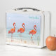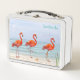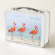 Beaux flamants roses de corail sur la plage. Texte de nom prêt à être personnalisé.