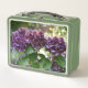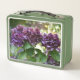 Prenez vos repas au travail ou à l'école avec cette boîte à lunch en métal qui présente une photo de fleurs d'Hydrangea violette rouge, communément appelée Hortensia. Un joli design floral ! Sélectionnez la couleur de votre boîte à lunch.