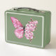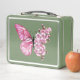 Flower arrangement of pink butterfly with rose Japanese cherry blossoms on white background.