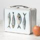 "Four Fish" par Emma Scarvey. Possède quatre poissons sur un arrière - plan blanc.