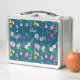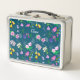 Lunch Box Hand-painted watercolour flowers on a deep blue