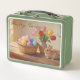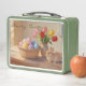 Lunch Box Happy Easter with Colorful Eggs and Tulips
