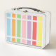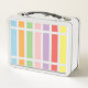 Geometric linéaire, rectangle, striped pattern of rainbow pastel hues of blue, orange, vert, rose, purple, rouge et jaune.