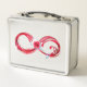 Infinity symbole of continuous stream of red pouring into glass glass glass on white background.