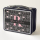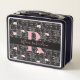 Cute Black Rose Kitty Chats Monogramme Boîte à lunch en métal. Personnalisez en ajoutant votre nom, initial et Profitez!
