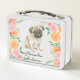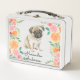 Lunch Box Joli chiot Carlin avec des fleurs d'aquarelle mono