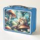 Boîte à lunch pour fille de conte de fées personnalisée. Belle fée sur un escargot dans une forêt magique avec grenouilles, papillons et autres choses de conte de fées.