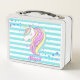 Voici la boîte à lunch métallique Cute Fun Kawaii Rainbow Aquamarine Stripes, l'accessoire parfait pour la rentrée des classes ! Cette boîte à lunch est mignonne et drôle et présente des arcs-en-ciel colorés dessinés à la main sur des rayures aquamarine et blanches. Avec ses accents roses girly et son design cool, elle rendra l'heure du déjeuner agréable et stylée. Idéale pour quiconque aime le kawaii, cette adorable boîte à lunch combine amusement et praticité dans un charmant emballage.