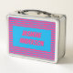 Cette formidable lunchbox présente une image art numérique d'un axolotl mignon, une salamandre mexicaine, portant un sombrero et des maracas secs. L'axolotl est rose pâle avec des branchies en plumes rose vif et une queue rose vif. Il a d'énormes yeux et un sourire sur le visage. Le sombrero est jaune avec un cactus vert au milieu. Le cactus est entouré de piments et de tournesols mexicains, également appelés Tithonia. Les Maracas sont jaunes avec des fleurs rouges et vertes et des lignes ondulées. Il y a du texte personnalisé à l'arrière pour que vous puissiez inclure un nom.