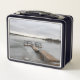 Une boîte à lunch avec une photo d'un lac gelé.