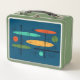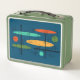 Boîte à lunch lignes et ovales rétro. La couleur de fond peut être personnalisée.