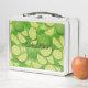 Tranches de chaux et feuilles. Motif sans couture. Couleur arrière - plan personnalisée. Texte personnalisé de chaque côté.
