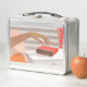 Lunch Box Main des femmes poussant le bouton snooze du révei