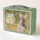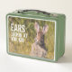 Ajoutez une touche d'humour et de nature à l'heure du déjeuner avec cette boîte à lunch fantaisiste et à thème faunique ! Utilisez le mème actuel ou remplacez-le par l'un des vôtres ! Les oreilles te regardent, gamin ! Un joli et curieux lapin de coton oriental se dresse dans l'herbe longue pour avoir un meilleur regard sur le photographe. Photographié fin mai 2018 au parc régional de Boundary Bay, C.-B., Canada. Basé sur la photographie originale de W.H. Sim. Tous droits réservés. Voir plus sur zazzle.com/walkswithnature