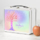La boîte à lunch de cette fille est décorée dans des couleurs arc-en-ciel et des étoiles scintillantes. Vous pouvez le customiser avec un nom et un monogramme. Arbre de mosaïque d'origine © Michele Davies.