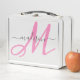 Écriture rose monogrammé initiale et boîte de déjeuner en métal nom pour une fille. Lettres assez rose et gris.