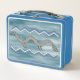Des motifs de zigzag bleu et blanc apparaissent au-dessus et au-dessous d'un monstre de lac canadien à tête de mouton serpentine dans cette oeuvre cryptée originale de Richard H. Fay.