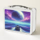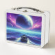 Cette boîte à lunch a une photo de voyage au clair de lune.