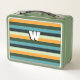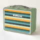 Une boîte à lunch en métal accrocheuse avec un motif rayé audacieux à l'avant et à l'arrière. Personnalisez avec le nom du destinataire d'un côté, et initial comme un monogramme de l'autre, en caractères gras. Un accessoire élégant pour le travail, l'école, les voyages et les jours de sortie.