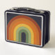 Conception rétro de la boîte à lunch arc-en-ciel. Couches arc-en-ciel aux couleurs muettes, orange, rouge et vert.