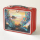 Tableau original d'un paysage au coucher du soleil, avec un arbre en forme de coeur avec deux oiseaux.