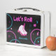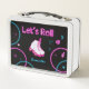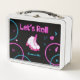 Un design rétro de patinage à rouleaux avec du texte "Let's roll" de style néon, des illustrations colorées des années 70 et 80, boule disco sur un arrière - plan noir. Un design parfait pour les amateurs de roller, de soirées disco, de design nostalgique des années 70 et 80, d'illustrations colorées et de motifs de néon vintages.