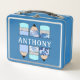 Nom personnalisé Étudiant crayon Bleu Métal Boîte à lunch, vous pouvez personnaliser le nom et le texte.