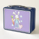 Cette conception de produit présente des illustrations d'un lapin farci, d'une carotte et d'un coeur rose. Avec ses graphismes colorés, il fait une boîte à lunch métallique mignonne et unique pour les filles avec texte personnalisé et couleur arrière - plan.