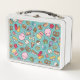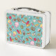 Boîte à lunch avec une illustration super mignonne de la malbouffe. Ce design motif amusant a burger, frites, hot dogs, pizza, crème glacée, pop-corn et tant d'autres mignons doodles de nourriture.