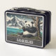 Un panda trouve un plaisir tranquille dans un snack en bambou dans son coin isolé. L'arrière - plan rustique et patiné en bois foncé renforce l'atmosphère paisible. Une montagne surmontée de neige offre un décor spectaculaire, tandis que l'océan bleu apporte une touche de calme. Personnalisez la scène avec un nom personnalisé.