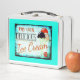 Conception basée sur un panneau vintage de glaces. Dans les couleurs bleu, turquoise, blanc et noir. Vient des cônes de crème glacée complète et dit "Essayez notre délicieuse crème glacée".