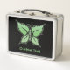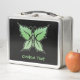 Icône papillon composée de feuilles à la menthe verte. Couleur arrière - plan personnalisée. Texte personnalisé des deux côtés.