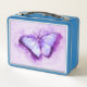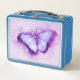 Cette boîte à lunch a un joli papillon illustré dessus.