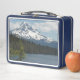 Pour la nature et le grand amateur extérieur! Prenez vos repas pour aller travailler ou aller à l'école avec cette boîte à lunch métallique qui présente une photo pittoresque de la neige enroulée du mont Hood, ainsi qu'un lac bleu et des paysages boisés environnants dans l'État Pacifique Nord-Ouest de l'Oregon. Sélectionnez la couleur de votre boîte à lunch.