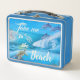 Dauphins dans le surf, tortue de mer sous l'eau et les gens qui jouent sur la plage, tableau de bord de mer idyllique avec "emmenez-moi à la plage" dans la typographie moderne.