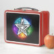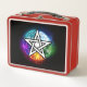 Pentagramme lumineux dessiné de façon artistique avec cinq éléments magiques, eau, terre, feu, astral, air sur arrière - plan noir. Pentagramme de Wiccan. Wicca
