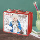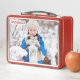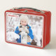 Cette mignonne lunchbox en métal de noël présente des santa claus livrant des cadeaux sur le dos et une photo mignonne de votre fille sur le devant. Idéal pour les garçons et les filles de l'école pour stocker leur déjeuner. Pour modifier la photo et le texte cliquez sur le bouton Personnaliser. Cette conception contient A.I.