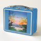 Belle boîte à lunch en métal bleu avec design Tropical Breeze Goa Beach - inspirée de l'art de couverture de notre Stoneygate Remix de notre chanson