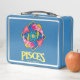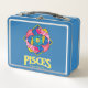 Déjeuner en métal turquoise/teal de qualité 5 étoiles avec design Pisces Fish. Disponible en d'autres couleurs.